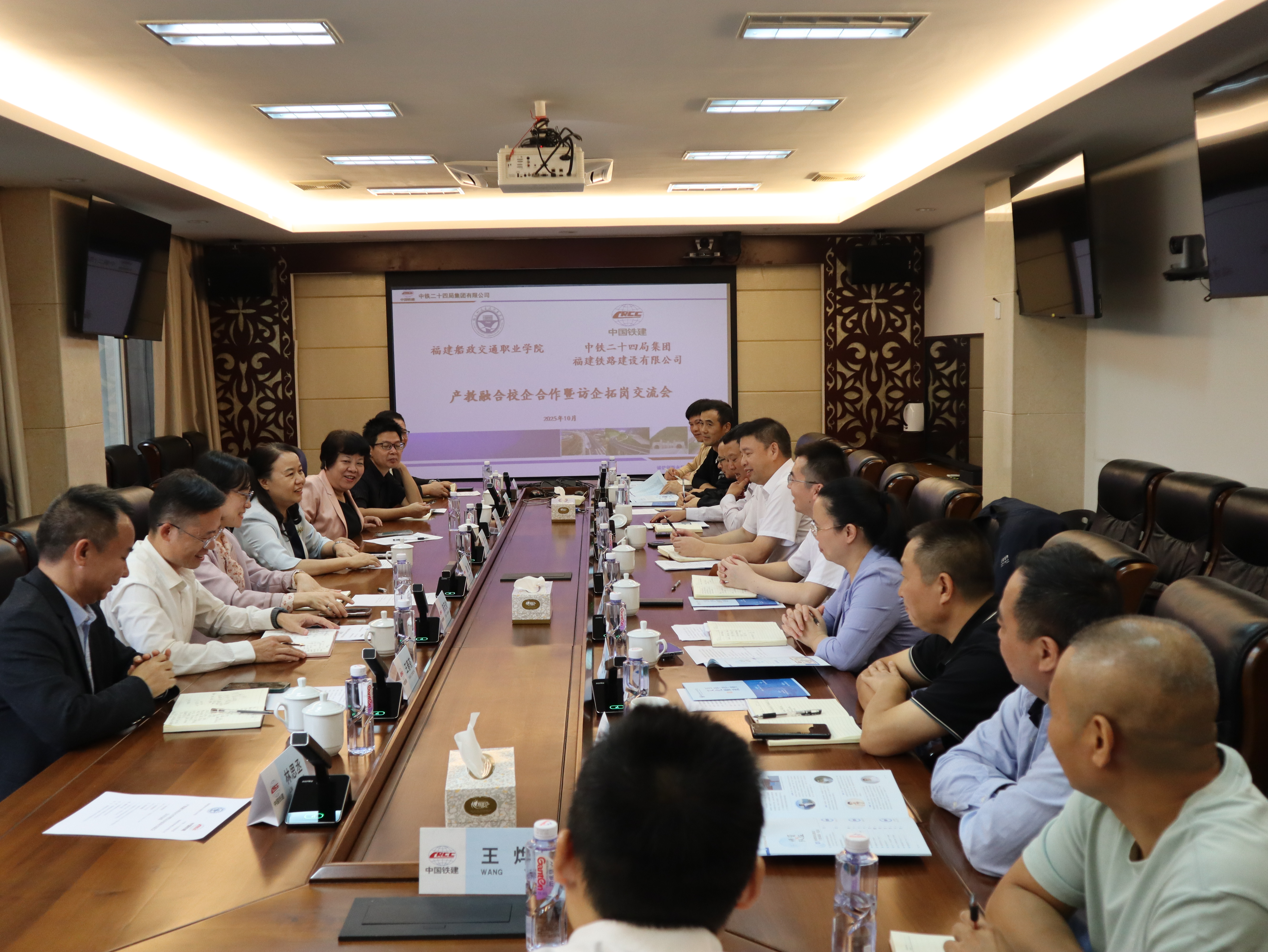 中鐵二十四局福建公司溫裕洪書記對陳群校長一行的到來表示熱烈歡迎,對學(xué)院特色發(fā)展、質(zhì)量辦學(xué),培養(yǎng)德技并修、注重實(shí)踐的人才取得的成效予以高度評價(jià)。校企雙方就深化產(chǎn)教融合、科教融匯,加強(qiáng)專業(yè)建設(shè)、做優(yōu)人才培養(yǎng)、推進(jìn)學(xué)生就業(yè),開展人員培訓(xùn)、黨建共建等深入交流。