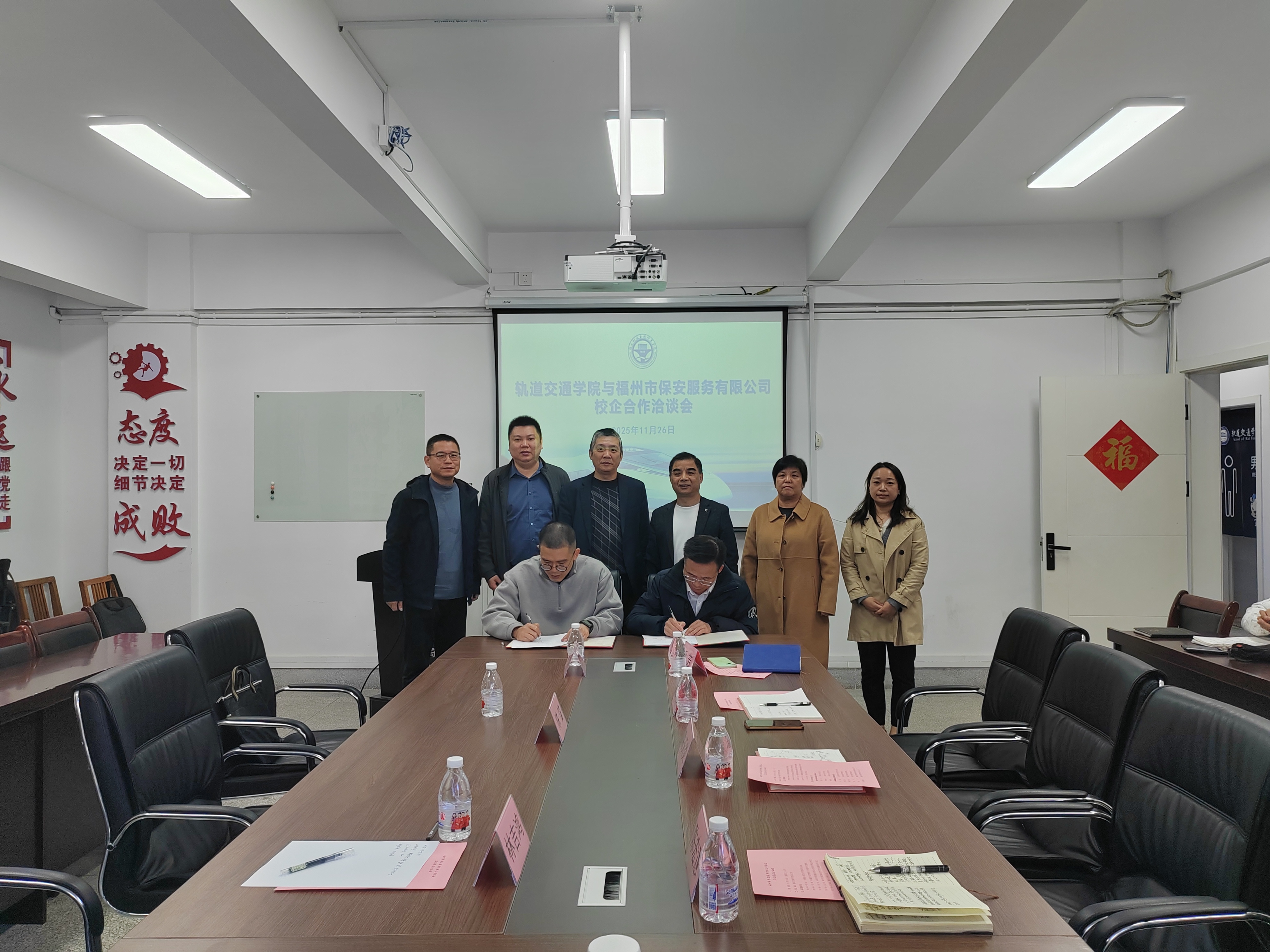 簽約儀式現(xiàn)場(chǎng),福州市保安服務(wù)有限公司負(fù)責(zé)人陳笛、綜合辦公室主任羅宏青、培訓(xùn)分公司副經(jīng)理林吉鴻等企業(yè)代表,與軌道交通學(xué)院院長陳天炎、黨總支書記孫基、副院長陳宏意、季芳以及運(yùn)營教研室教師代表共同出席了本次活動(dòng),見證了這一重要時(shí)刻。