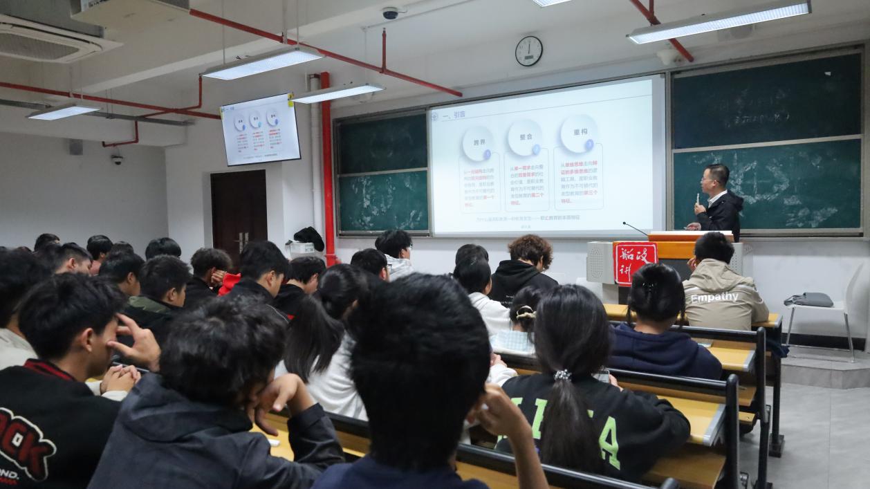 為主動(dòng)適配 AI 技術(shù)發(fā)展對(duì)職業(yè)教育的新要求,深化產(chǎn)業(yè)學(xué)院建設(shè),優(yōu)化學(xué)院人才培養(yǎng)模式,幫助學(xué)生把握AI技術(shù)與職業(yè)教育融合的發(fā)展機(jī)遇。近日,我院軌道交通學(xué)院院長(zhǎng)陳天炎教授作題為“AI時(shí)代基于產(chǎn)業(yè)學(xué)院的高職專業(yè)人才培養(yǎng)模式創(chuàng)新與實(shí)踐”的專題講座。軌道交通學(xué)院學(xué)生現(xiàn)場(chǎng)聆聽講座。