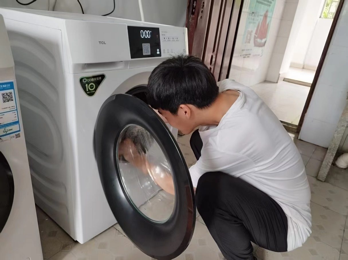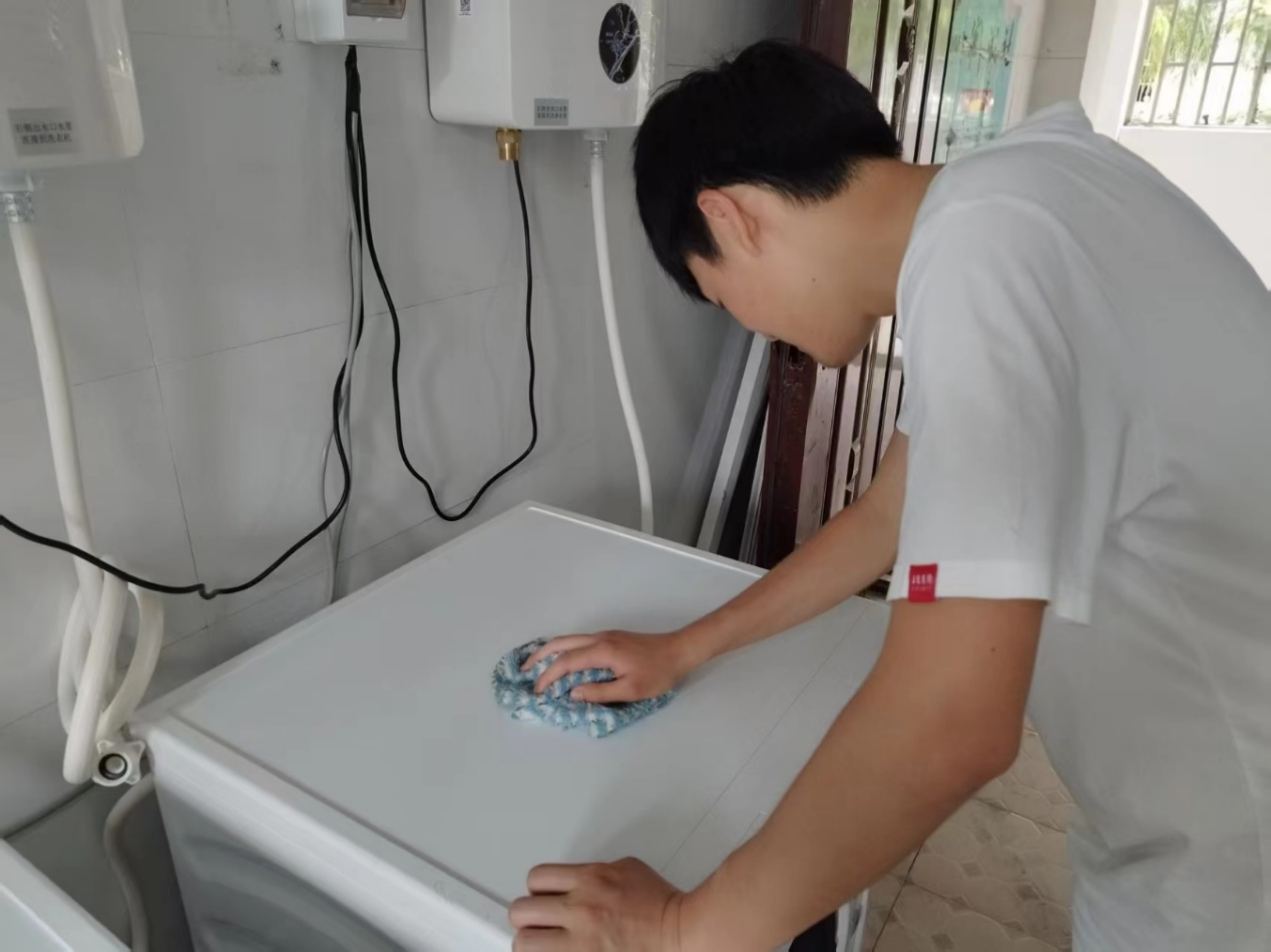 圖4 志愿者仔細擦拭洗衣機外部