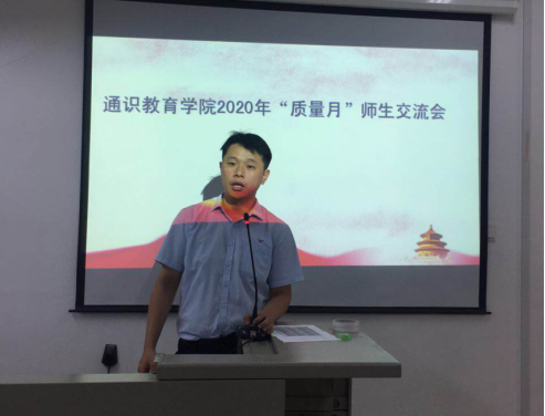 為落實(shí)《通識(shí)教育學(xué)院關(guān)于印發(fā)2020年“質(zhì)量月”活動(dòng)方案的通知》(通識(shí)院〔2020〕6號(hào))要求,我院于9月23日下午組織開展2020年“質(zhì)量月”師生交流會(huì)活動(dòng)。活動(dòng)首先為獲得“數(shù)學(xué)網(wǎng)課教學(xué)最佳筆記大賽”獲獎(jiǎng)學(xué)生頒發(fā)榮譽(yù)證書。在場(chǎng)師生圍繞“如何提高教學(xué)質(zhì)量”進(jìn)行交流,學(xué)生紛紛踴躍發(fā)言,現(xiàn)場(chǎng)氣氛活躍。最后,通識(shí)教育學(xué)院金晶晶副院長(zhǎng)對(duì)活動(dòng)進(jìn)行總結(jié),并勉勵(lì)到場(chǎng)學(xué)生: