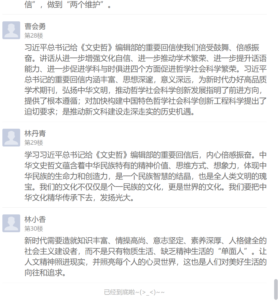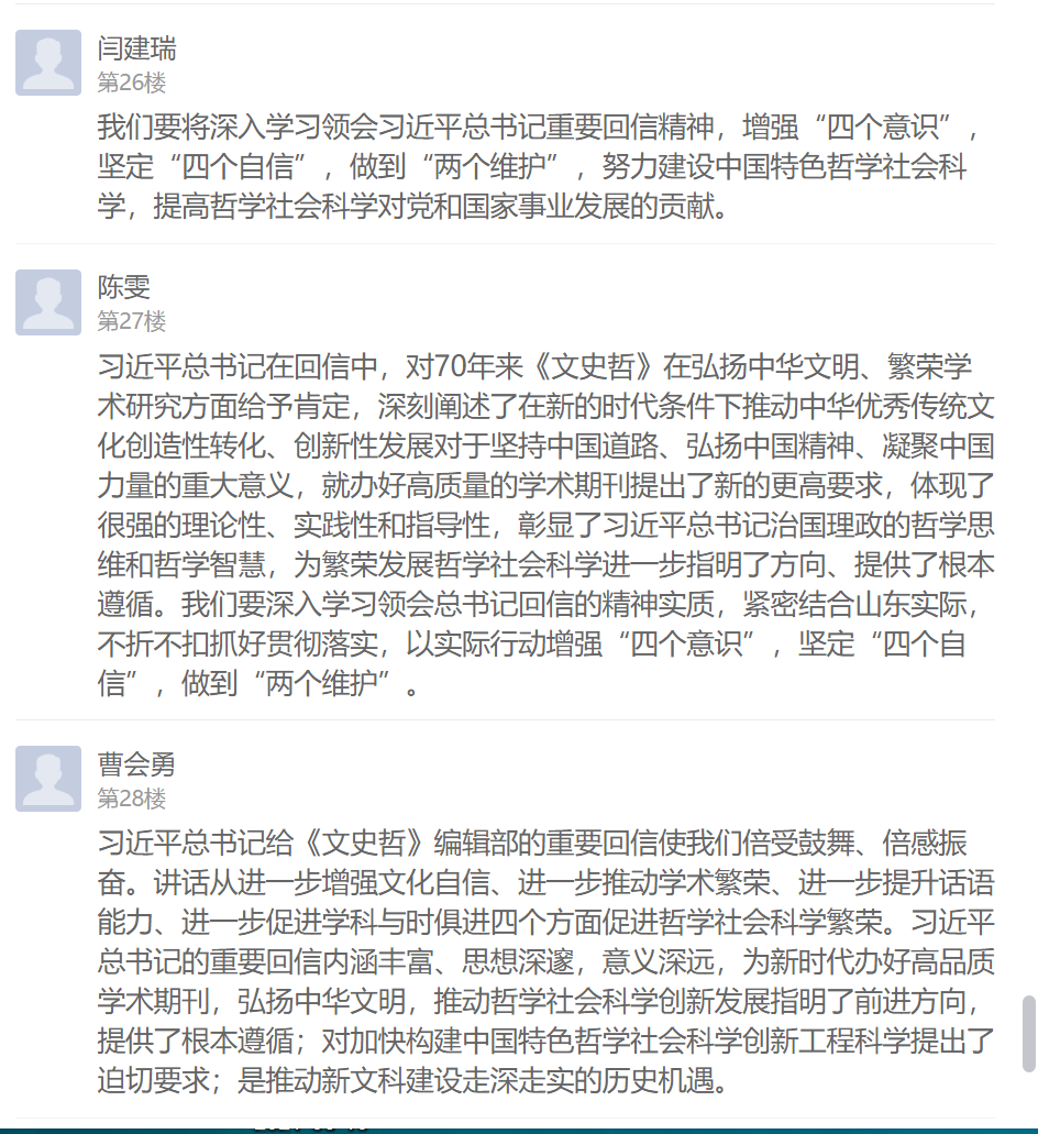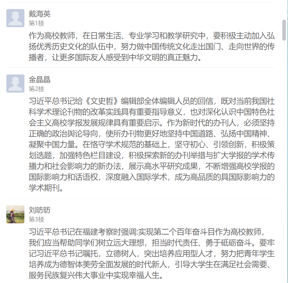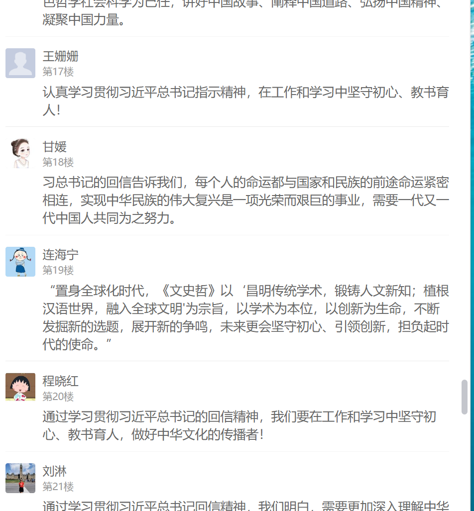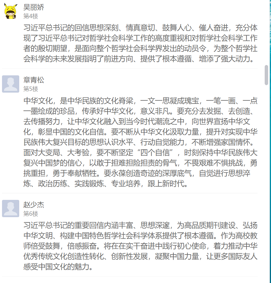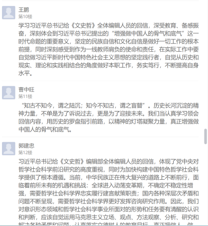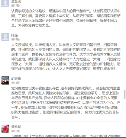 習(xí)近平總書記的回信在支部黨員中引起強烈反響,不僅在學(xué)習(xí)現(xiàn)場熱烈交流學(xué)習(xí)感想,還在線上學(xué)習(xí)通總支討論區(qū)紛紛留言發(fā)表心得體會。
