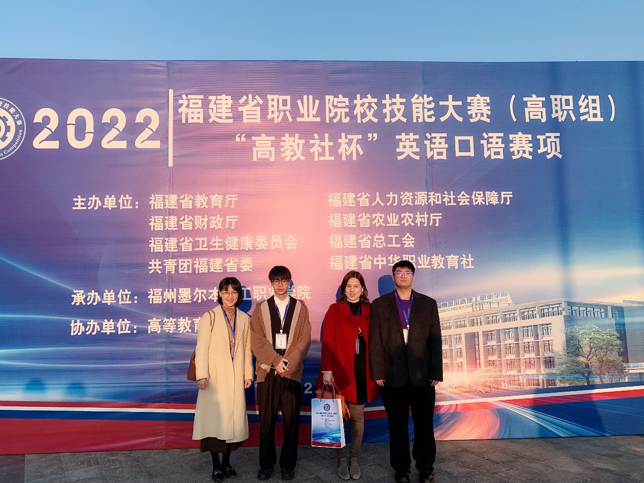 2022年福建省職業(yè)院校技能大賽(高職組)英語(yǔ)口語(yǔ)賽項(xiàng)于1月7日至9日在福州墨爾本理工職業(yè)學(xué)院舉行。我校谷豐獲得省二等獎(jiǎng)、李圣杰獲得省三等獎(jiǎng)。