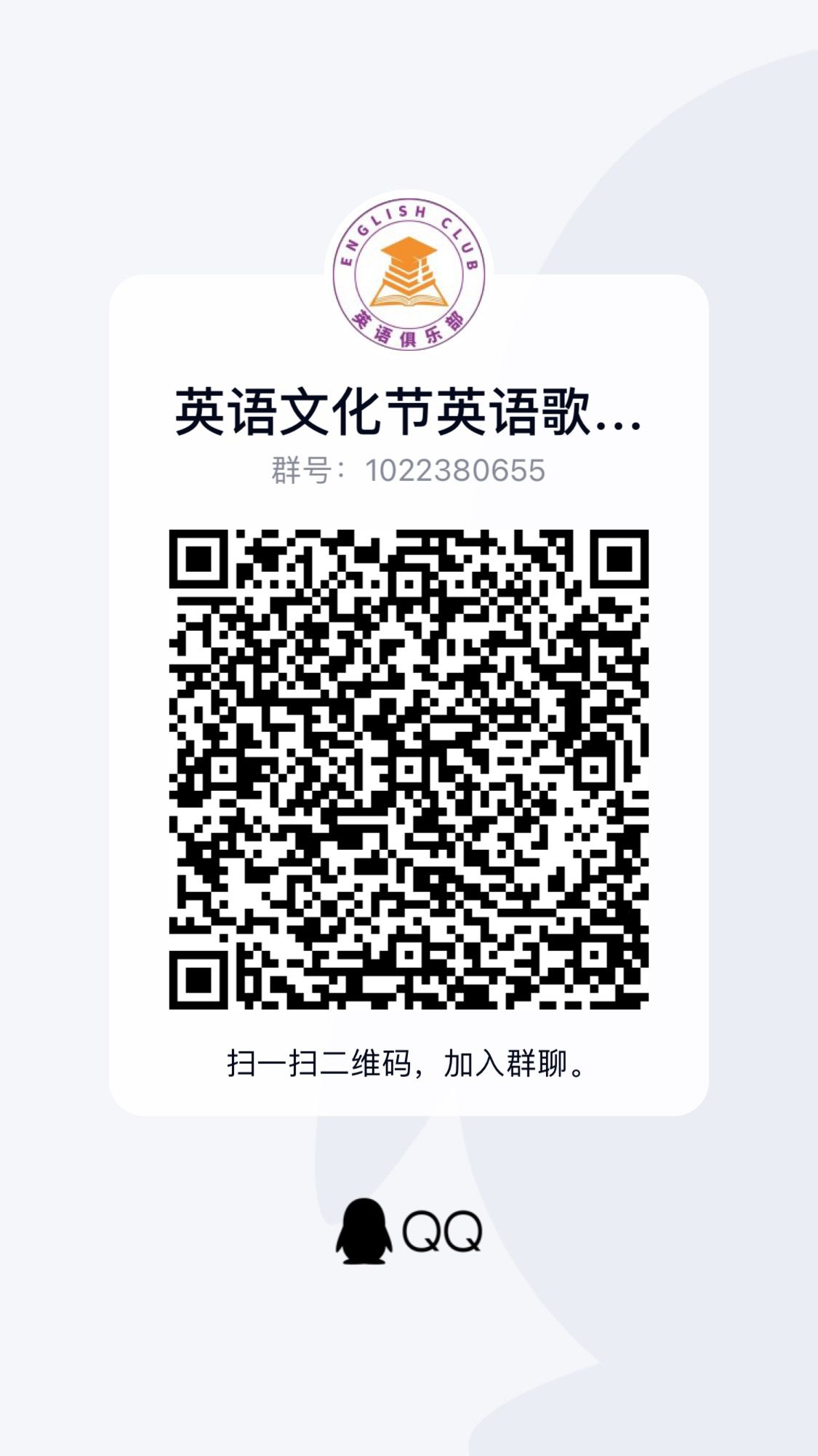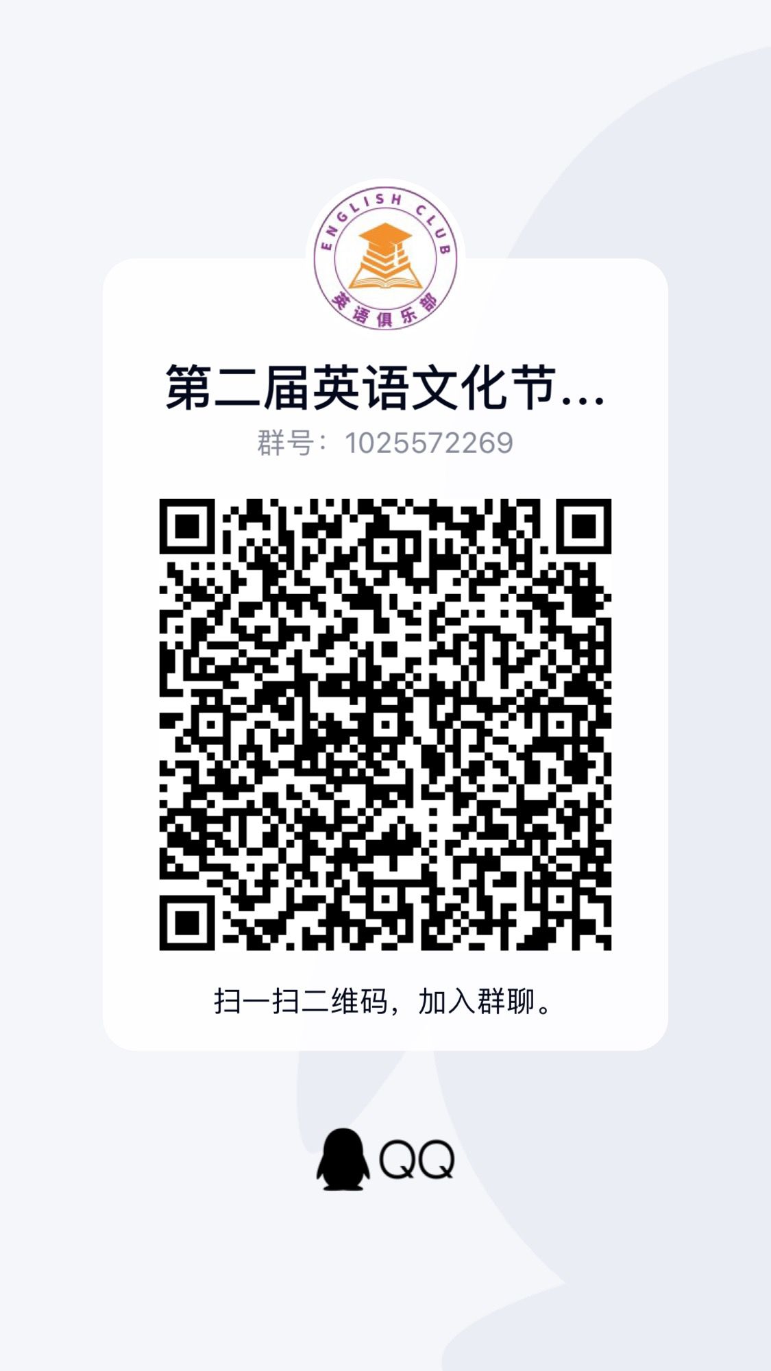 掃碼加入Q群并在三全育人平臺搜索關鍵詞“英語文化節(jié)”找到相應活動進行報名