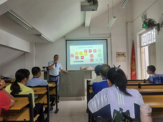 此次培訓分為理論知識學習和現(xiàn)場實操訓練。在理論知識學習環(huán)節(jié),專家對應(yīng)急救護的法律法規(guī)、判斷救護條件、心肺復(fù)蘇方法等內(nèi)容進行了詳細的講解和分析。在實操模擬環(huán)節(jié),教職工們積極參與訓練,將基礎(chǔ)知識轉(zhuǎn)化為模擬現(xiàn)場救護行為,專家現(xiàn)場指導每位教師進行實際操作,有效提高了教師們的運動損傷的急救技能。