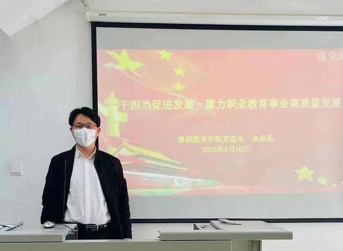 緊接著,通識教育學院副院長劉淋以《深入學習貫徹黨的二十大精神、努力推動職業(yè)教育高質量發(fā)展》為題上專題黨課。劉淋強調,我們要深刻領會黨的二十大的豐富內涵和核心要義,深學細悟黨的二十大提出的一系列新戰(zhàn)略新部署,自覺把思想統(tǒng)一到黨的二十大精神上來,干事創(chuàng)業(yè)、積極作為,為辦好人民滿意的職業(yè)教育不懈努力。