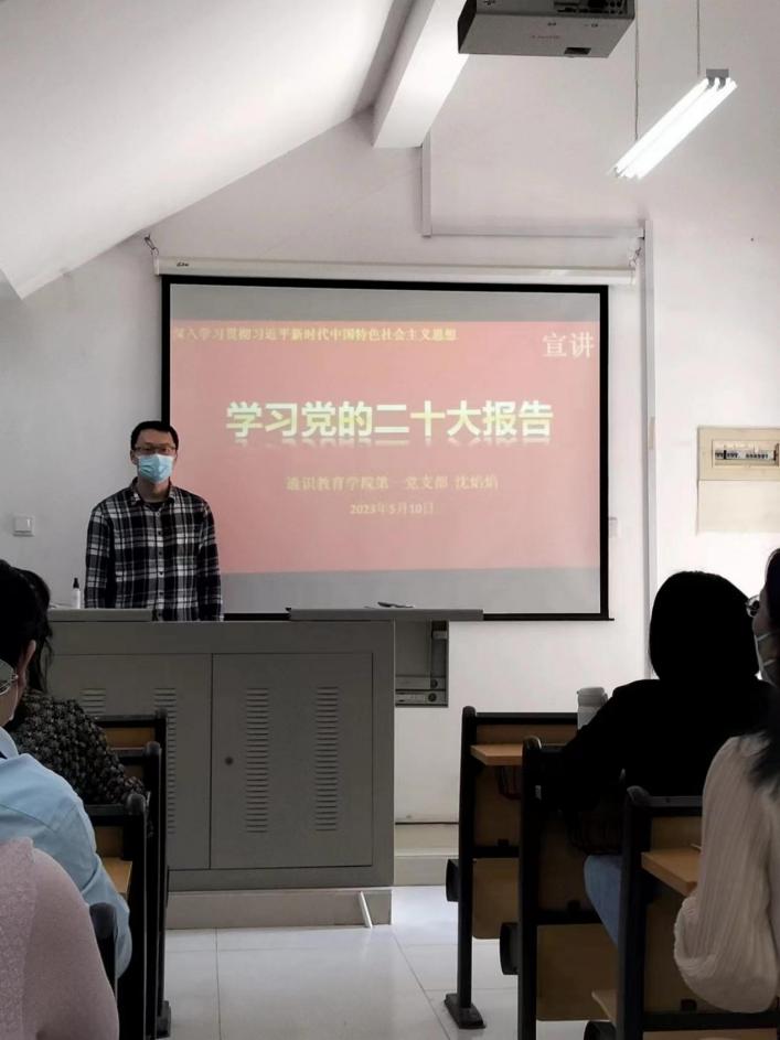 首先,沈焰焰以《學習黨的二十大報告》為題,為支部全體黨員上專題黨課。沈焰焰從中國共產黨第二十次全國代表大會主題、“三個務必”、“六個必須堅持”等方面,認真解讀黨的二十大報告的主題和主要內容,內容豐富,深入淺出。