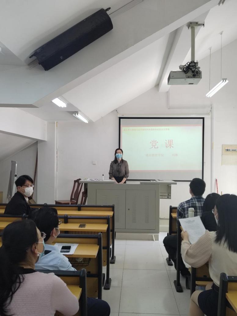 為深入開展學習貫徹習近平新時代中國特色社會主義思想主題教育,5月10日下午,通識教育學院第一黨支部開展黨員干部同上專題黨課活動,支部全體黨員參會,會議由黨支部書記沈焰焰主持。