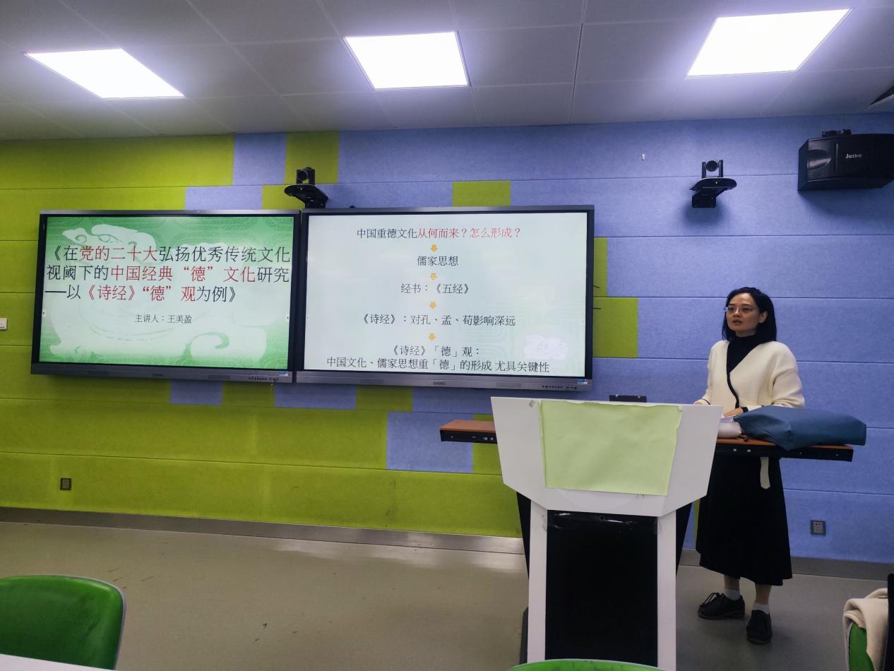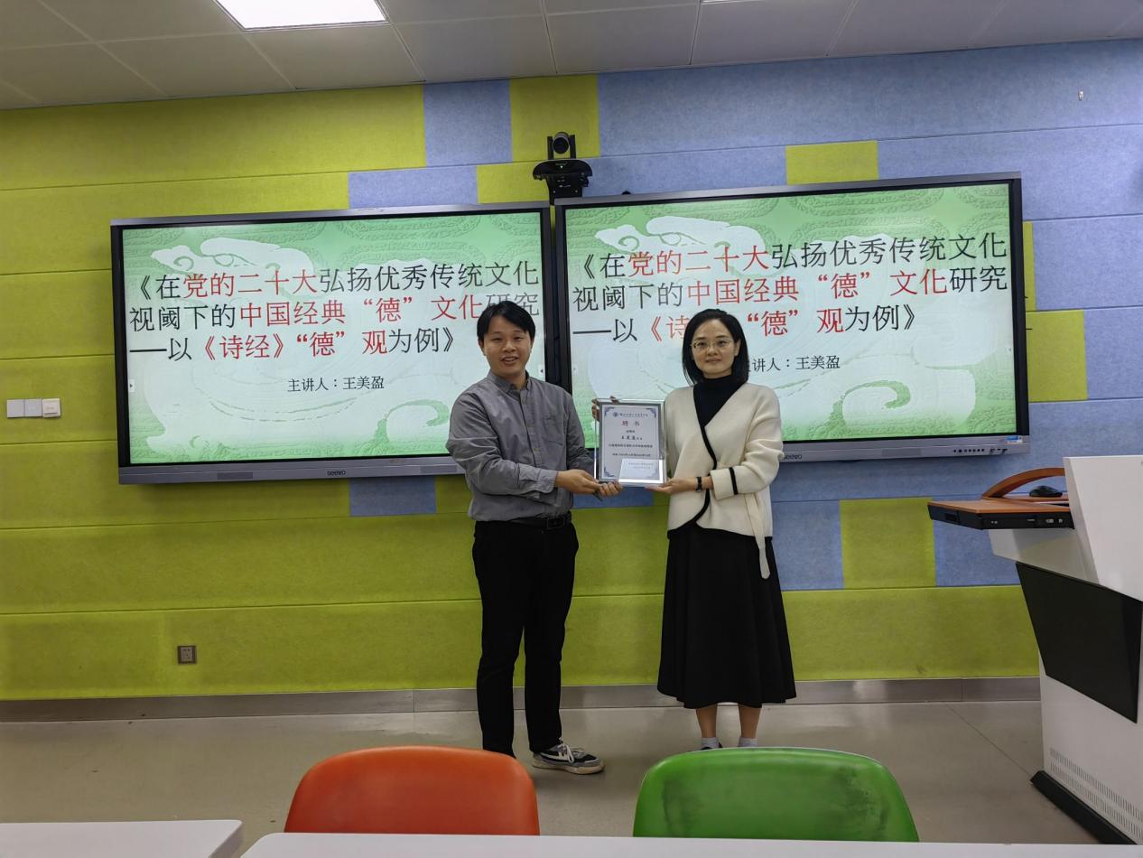 為進一步傳承和發(fā)揚中華優(yōu)秀傳統(tǒng)文化,提高我院全體教職工通識文化素養(yǎng),2023年12月6日,我院邀請閩江學院人文學院副教授、福建船政交通職業(yè)學院客座教授、福州市國學研究會專家委員會委員王美盈博士做以題為《弘揚優(yōu)秀傳統(tǒng)文化視閾下的中國經(jīng)典“德”文化研究──以<詩經(jīng)>“德”觀為例》培訓,本次培訓在福道園自強樓智慧教室2進行,我院全體教職工參加培訓。