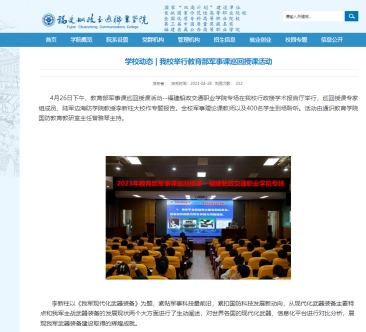 2.依托“黨建”思維,開展豐富多樣的學(xué)生活動(dòng),創(chuàng)新國防教育形式。支部充分發(fā)揮國防教育教研室學(xué)科優(yōu)勢,通過開展形式多樣、內(nèi)容豐富的課外活動(dòng),創(chuàng)新黨建工作的形式,讓黨建工作豐富活潑,深入人心。如,祭拜活動(dòng)英雄、“愛我國防”大學(xué)生演講比賽、國家安全教育日系列活動(dòng)、軍事技能大比武等活動(dòng),提高提高青年學(xué)子的國防意識(shí)和愛國精神。