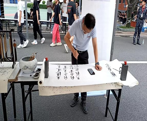 活動(dòng)展示學(xué)生書法作品,在場(chǎng)師生贊賞不已,紛紛表示要學(xué)習(xí)書法技藝,成為新時(shí)代書法藝術(shù)的傳承者。在活動(dòng)現(xiàn)場(chǎng),師生共同在宣紙上勁筆書寫青春風(fēng)采,呈現(xiàn)船政學(xué)子扎實(shí)的書法功底,彰顯了對(duì)書法藝術(shù)的獨(dú)特見解和創(chuàng)新精神,體現(xiàn)對(duì)傳統(tǒng)文化的熱愛和追求,展示“工匠”精神。