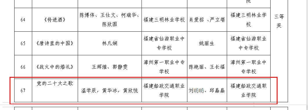 本次誦讀大賽由福建省教育廳、福建省語言文字工作委員會(huì)主辦,旨在弘揚(yáng)中華優(yōu)秀傳統(tǒng)文化,提升大學(xué)生語言藝術(shù)修養(yǎng)和表達(dá)能力,吸引了全省眾多高校的積極參與。我校通識(shí)教育學(xué)院語文教研室教師經(jīng)過精心籌備與層層選拔,選派了兩支代表隊(duì)參賽。最終,于曉凌、吳婷婷指導(dǎo)的學(xué)生作品《青春中國(guó)》,以及劉昉昉、邱晶晶指導(dǎo)的學(xué)生作品《黨的二十大之歌》,分別獲得省二等獎(jiǎng)和省三等獎(jiǎng)。