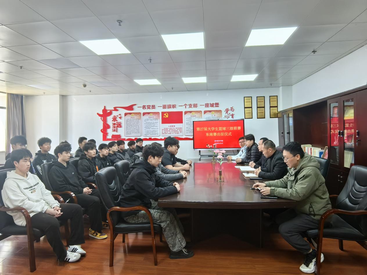為鼓舞士氣、凝聚斗志,全力備戰(zhàn)第27屆中國大學(xué)生籃球聯(lián)賽(CUBA)三級聯(lián)賽東南賽區(qū)比賽,4月2日,我校在圖書館1007室舉行籃球隊出征動員會。通識教育學(xué)院黨總支書記陳火城、院長郭建忠、教練林杰君等領(lǐng)導(dǎo)及全體隊員參加動員會議。