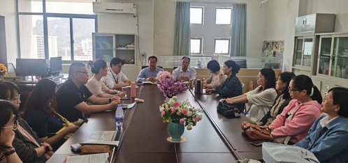 4月16日,通識(shí)教育學(xué)院黨總支書(shū)記陳火城、院長(zhǎng)郭建忠、副院長(zhǎng)金晶晶、辦公室主任謝哲偉一行深入英語(yǔ)教研室開(kāi)展專題調(diào)研,通過(guò)實(shí)地走訪、座談交流等形式,全面了解英語(yǔ)學(xué)科發(fā)展現(xiàn)狀,為英語(yǔ)學(xué)科高質(zhì)量發(fā)展開(kāi)展研討。英語(yǔ)教研室全體教師參加調(diào)研會(huì)議。