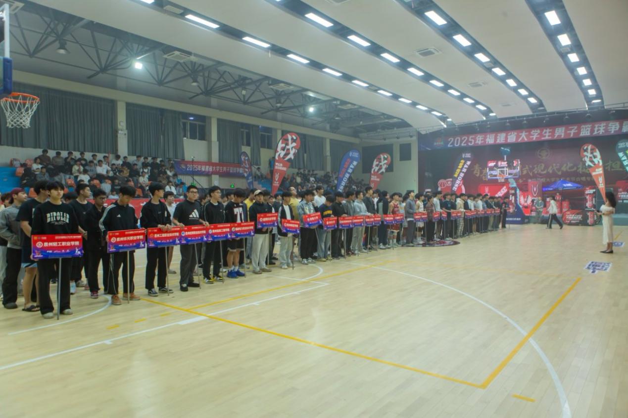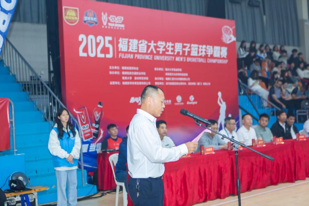 2025年福建省大學(xué)生男子籃球爭(zhēng)霸賽在4月24日晚在我校舉行開幕式。福建省籃球協(xié)會(huì)副秘書長(zhǎng)何瑋翔、福建省公安體育協(xié)會(huì)秘書長(zhǎng)朱凱、福建船政交通職業(yè)學(xué)院副院長(zhǎng)陳常暉、福建理工大學(xué)體育部主任林長(zhǎng)地、福州大學(xué)至誠(chéng)學(xué)院黨委副書記林文麟、福建師范大學(xué)公共體育部副主任鐘曉波、福建警察學(xué)院戰(zhàn)術(shù)系主任林陽東、福建船政交通職業(yè)學(xué)院通識(shí)教育學(xué)院院長(zhǎng)郭建忠、閩侯縣文化體育和旅游局局長(zhǎng)張其標(biāo)、福建師范大學(xué)體育科學(xué)院籃球教研室主任、本次比賽裁判長(zhǎng)張水順等領(lǐng)導(dǎo)和嘉賓出席了開幕式。