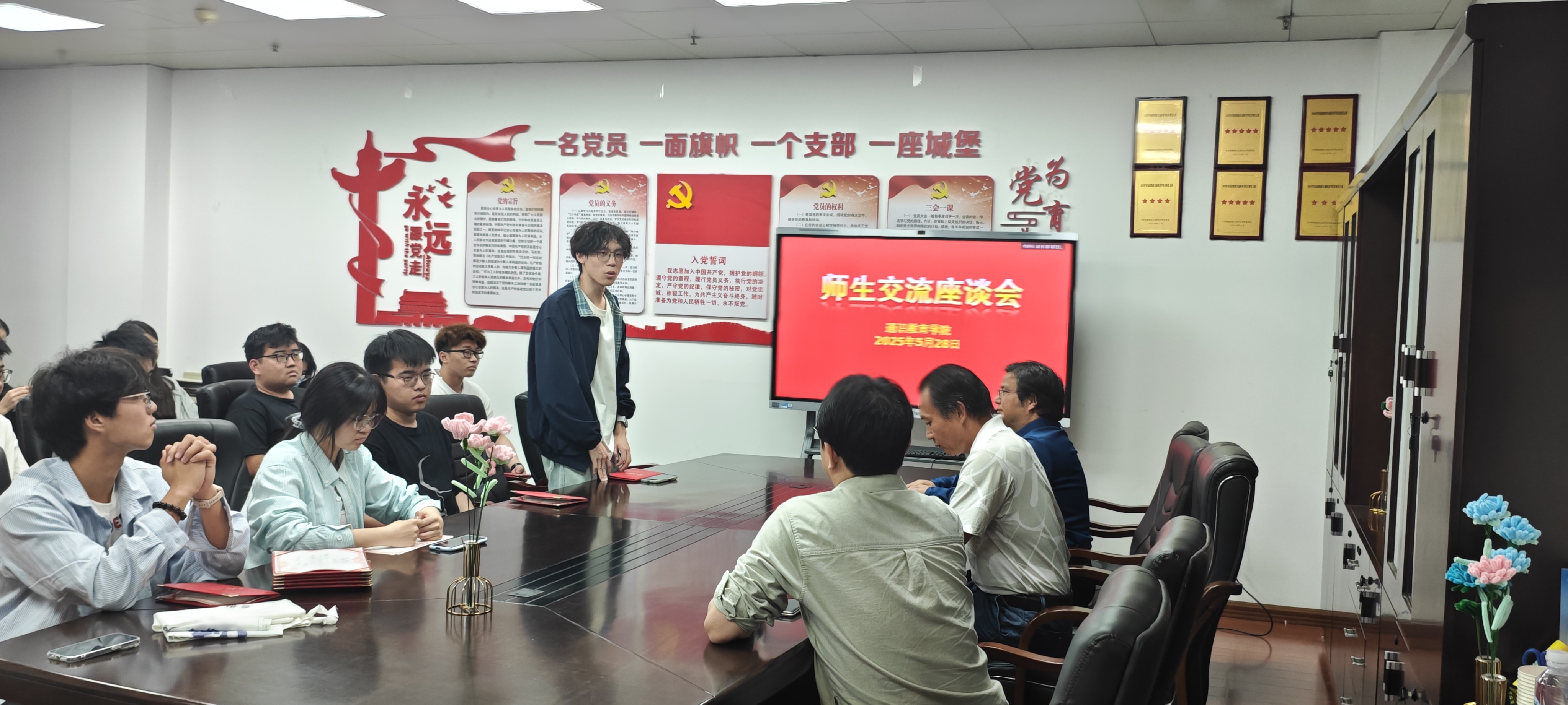 在交流環(huán)節(jié)中,學生代表們踴躍發(fā)言,氣氛熱烈。學生們不僅分享了各自的學習近況和本學期個人發(fā)展規(guī)劃,還圍繞師德師風建設、校園生活服務、學業(yè)發(fā)展指導等方面提出了意見和建議,與會教師逐一進行了耐心細致的解答、展開了深入討論。