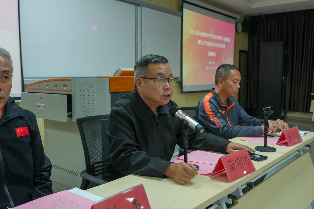 陳常暉副院長(zhǎng)代表學(xué)院致歡迎辭,向與會(huì)領(lǐng)導(dǎo)、嘉賓及各參賽隊(duì)伍表示熱烈歡迎。他介紹了我院作為國(guó)家示范性高職院校,秉持“以體育德、以賽育人、專技相長(zhǎng)”的體育育人理念,持續(xù)推進(jìn)體育教育融合發(fā)展所取得的成果。他表示,學(xué)院高度重視本次賽事協(xié)辦工作,已組建專項(xiàng)工作組,全面做好場(chǎng)地維護(hù)、后勤保障與安全服務(wù),著力營(yíng)造公平、安全、舒適的競(jìng)賽環(huán)境。他期待各參賽隊(duì)伍恪守體育道德,充分展現(xiàn)當(dāng)代大學(xué)生良好的精神風(fēng)貌和競(jìng)技水平。