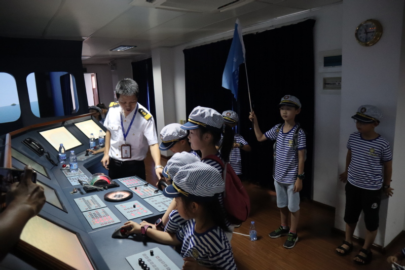身穿?;晟馈㈩^帶水手帽,精氣神十足的小朋友們參加了開班儀式,陳宜大副書記致開幕詞,并為夏令營授旗。辦公室主任余友輝、航海系主任江明光、輪機(jī)系主任陳清彬、福建省曙光救援中心副總隊長楊榕生以及部分教職工出席了開班儀式,工會常務(wù)副主席王麗敏主持活動儀式。