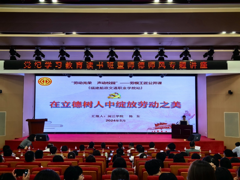 勞動(dòng)譜寫(xiě)時(shí)代華章,奮斗創(chuàng)造美好未來(lái)。5月8日上午,學(xué)院成功舉辦“勞動(dòng)光榮 聲動(dòng)校園”勞模工匠公開(kāi)課,閩江學(xué)院馬克思主義學(xué)院院長(zhǎng)陳東講授題為“在立德樹(shù)人中綻放勞動(dòng)之美”的公開(kāi)課。活動(dòng)在南區(qū)藝新樓三樓331第一學(xué)術(shù)報(bào)告廳舉辦,全體副科級(jí)及以上干部,支部書(shū)記、副書(shū)記,組織員,新入職教師等參加活動(dòng)。