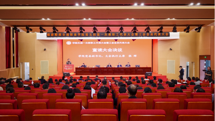 3月13日上午,福建船政交通職業(yè)學院第五屆第一次教職工代表大會暨工會會員代表大會在福船園藝新樓331報告廳順利舉行。本次會議是在學院深入學習宣傳貫徹全國“兩會”精神和全國、全省教育大會精神,“十四五”規(guī)劃全面收官、“十五五”規(guī)劃謀篇布局,學院申創(chuàng)第二期“雙高計劃”建設和深化綜合改革的關(guān)鍵時期召開的一次重要會議。福建省教科文衛(wèi)體工會工委主任郭立新、副主任陽先輝,學院黨委書記陳宜大,黨委副書記、院長陳錦輝,黨委副書記張輝,黨委委員、副院長陳艷紅,副院長陳常暉出席會議,正式代表、列席代表共200多人參加會議。會議由學院黨委委員、副院長陳艷紅主持。