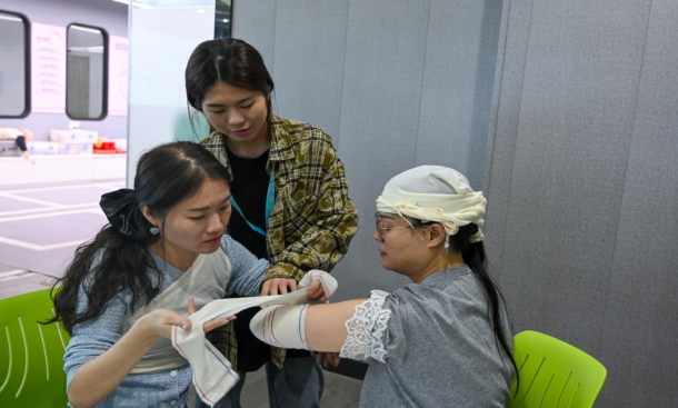 本次培訓(xùn)邀請紅十字救護(hù)員培訓(xùn)專業(yè)師資進(jìn)行授課,內(nèi)容緊扣日常生活與校園場景,涵蓋心肺復(fù)蘇(CPR)、自動體外除顫器(AED)使用、氣道異物梗阻急救(海姆立克法)、創(chuàng)傷包扎止血、骨折固定等核心技能。培訓(xùn)講師通過案例分析、互動演示等方式,生動講解急救“黃金四分鐘”原則和操作要點,倡導(dǎo)“人人學(xué)急救,急救為人人”健康理念。學(xué)院紅十字會志愿者們?yōu)閰⒂?xùn)教師細(xì)心糾正動作細(xì)節(jié),講解操作要點。在實操環(huán)節(jié),教職工們利用模擬人偶、繃帶、三角巾、自動體外除顫器(AED)等器材分組進(jìn)行反復(fù)演練,學(xué)習(xí)掌握基礎(chǔ)急救技能。