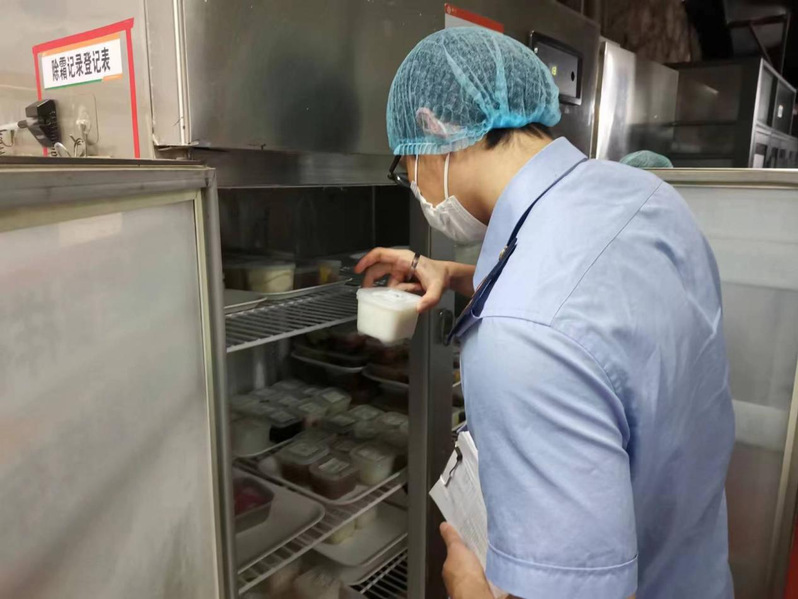 檢查組一行全面檢查了食堂疫情防控管理、食品進貨臺賬、員工健康管理、食品留樣、原料控制、加工制作過程、備餐供餐與配送、場所和設(shè)備設(shè)施清潔維護、餐飲具清洗消毒等。針對檢查發(fā)現(xiàn)的問題,要求立行立改。
