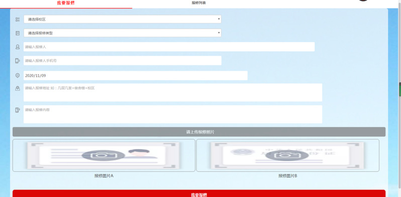 2、點擊智慧校園 報修平臺(請選擇校區(qū)、報修類型、填寫報修人、報修電話、報修地址、報修內(nèi)容并附上問題處圖片。根據(jù)實際情況進行報修、請勿重復(fù)報修),如有疑問可聯(lián)系物業(yè)服務(wù)電話:0591-83514173或直接到福建船政交通職業(yè)學(xué)院北區(qū)1#行政中心物業(yè)報修處報修。