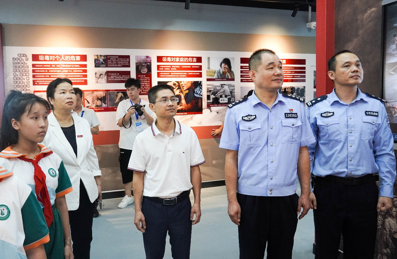 隨后,與會領(lǐng)導(dǎo)與師大附小及我院學(xué)生代表們一同參觀了禁毒宣教室。