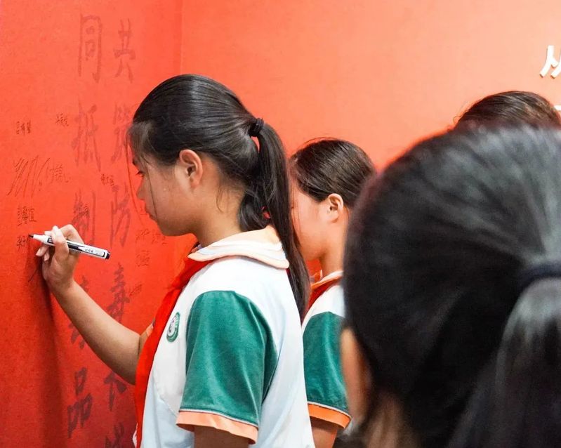 揭牌儀式后,大家在禁毒宣誓墻前莊嚴(yán)宣誓,并向師大附小及我院學(xué)生代表捐贈禁毒書籍。