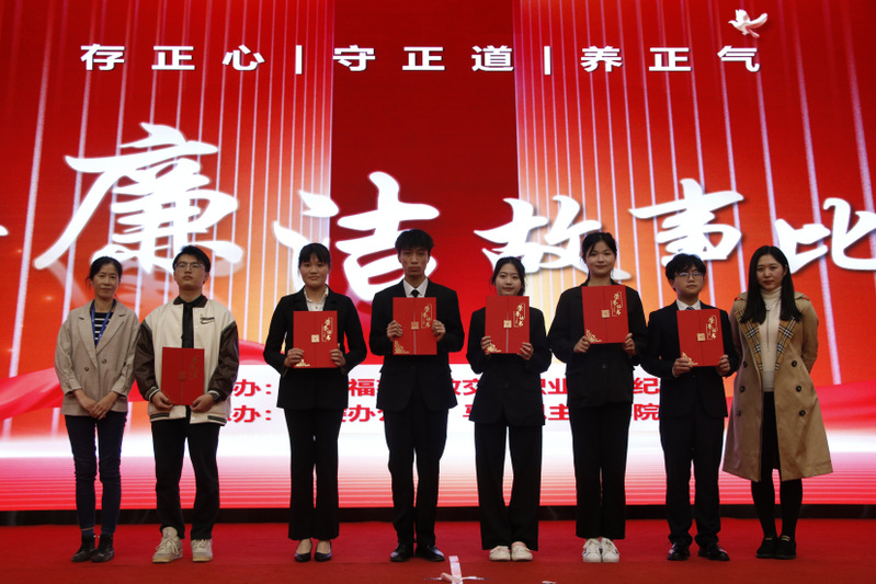 “他是‘立品當(dāng)如山有岳,持身要比玉無瑕’的清廉官員左宗棠?!薄敖乖5撈鸩荨刹?0不準(zhǔn)’是對特權(quán)思想的批評,是對‘權(quán)力任性’的約束?!薄傲疂崗慕蹋T魂育人。三尺講臺,擔(dān)起的是育人之責(zé);支支粉筆,書寫的是師者風(fēng)范?!薄?4位教師演講者先后上臺,圍繞弘揚廉潔精神,講述中國特色的廉潔故事;回溯百年黨史,講述恪守為民的廉潔故事;聚焦船政校史,講述校園廉潔文化建設(shè)的故事。他們以自信大方的臺風(fēng)、聲情并茂的演講、真摯動人的情感贏得現(xiàn)場陣陣掌聲。