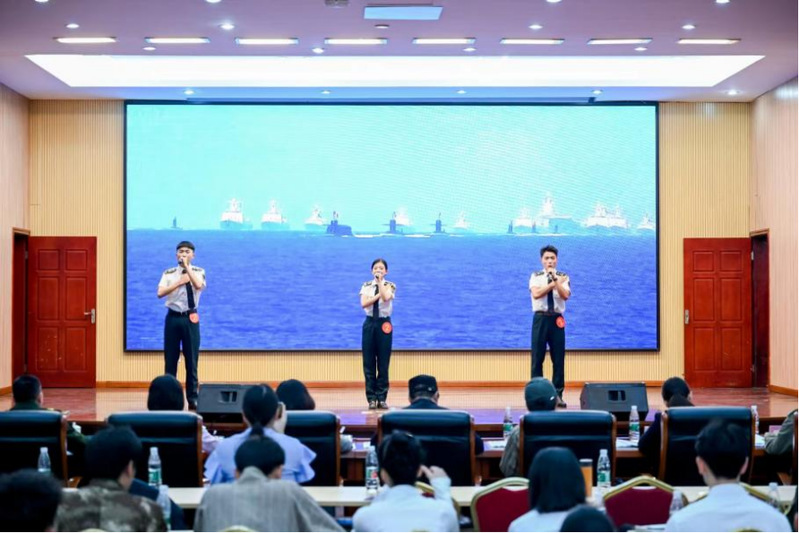 比賽中,來自我院航海學(xué)院的張?jiān)娾?、汽車學(xué)院的林子豪和陳嘉洛三位同學(xué)講述了船政先烈誓死海防、與艦共存的英勇事跡,慷慨激昂地歌頌了國家強(qiáng)盛、軍隊(duì)強(qiáng)大帶給人民的安全感,號(hào)召廣大青年堅(jiān)定信念、保衛(wèi)國家、擔(dān)當(dāng)民族復(fù)興大任,生動(dòng)詮釋了新時(shí)代大學(xué)生投身國防建設(shè)的熱血青春。