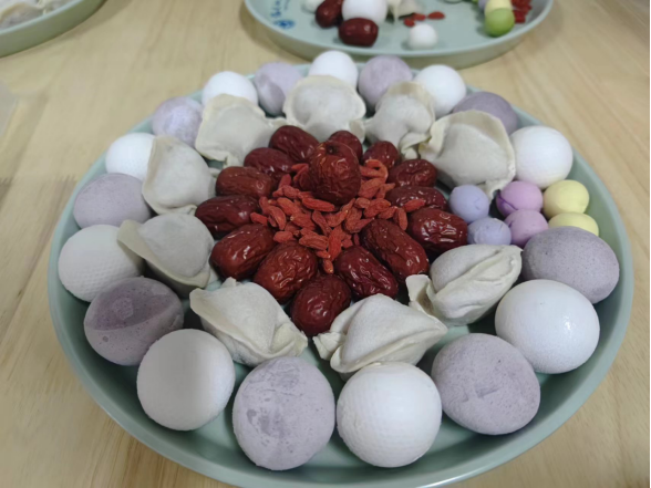 教師們帶領(lǐng)同學(xué)們動(dòng)手搓湯圓、拌餡兒。大家分工配合、有條不紊,現(xiàn)場(chǎng)歡聲笑語(yǔ)、氣氛熱烈。一個(gè)個(gè)湯圓躍然盤中,寓意著團(tuán)團(tuán)圓圓,包涵著對(duì)生活的美好祝愿。