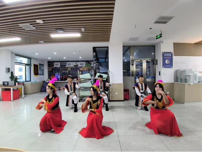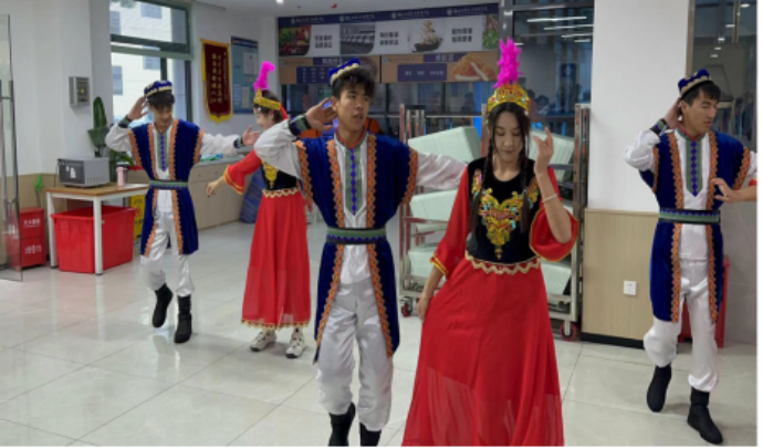 新疆籍學(xué)生身穿民族服飾,一首熱情奔放的維吾爾族舞蹈《花園》拉開(kāi)了活動(dòng)的序幕。優(yōu)美的舞姿充分展現(xiàn)了民族特色文化,與臺(tái)下師生的互動(dòng)更是將全場(chǎng)的氣氛帶至高潮。