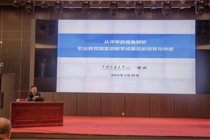 鄔躍作“從評(píng)審的視角解析職業(yè)教育國家級(jí)教學(xué)成果獎(jiǎng)的培育與申報(bào)”的主題報(bào)告