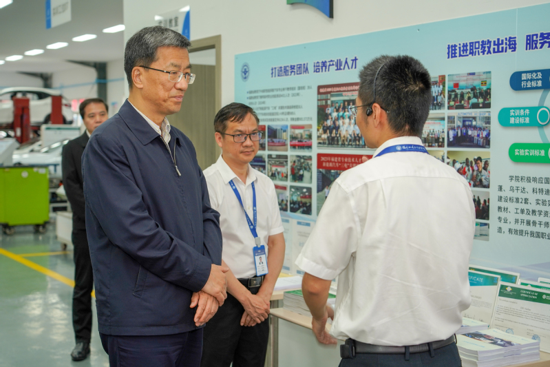 5月23日下午,教育部黨組書記、部長懷進鵬蒞臨學院,考察調(diào)研了新能源汽車產(chǎn)教融合示范園、交通土建智慧檢測產(chǎn)教融合實訓基地、先進艦船模擬器實訓中心、航空實訓基地。