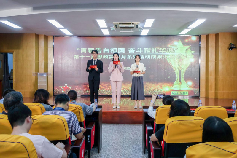 6月19日,福建船政交通職業(yè)學(xué)院“青春告白祖國 奮斗獻禮華誕”第十一屆思政實踐月系列活動成果匯報會在福道園行政樓6樓學(xué)術(shù)報告廳舉行。學(xué)院黨委委員、副院長陳艷紅,紀委辦公室、黨委組織部、宣傳統(tǒng)戰(zhàn)部、教師工作部、學(xué)生工作部、教務(wù)處、團委以及各二級學(xué)院黨總支負責(zé)人,馬克思主義學(xué)院全體教師和學(xué)生代表共300余人參加匯報會。