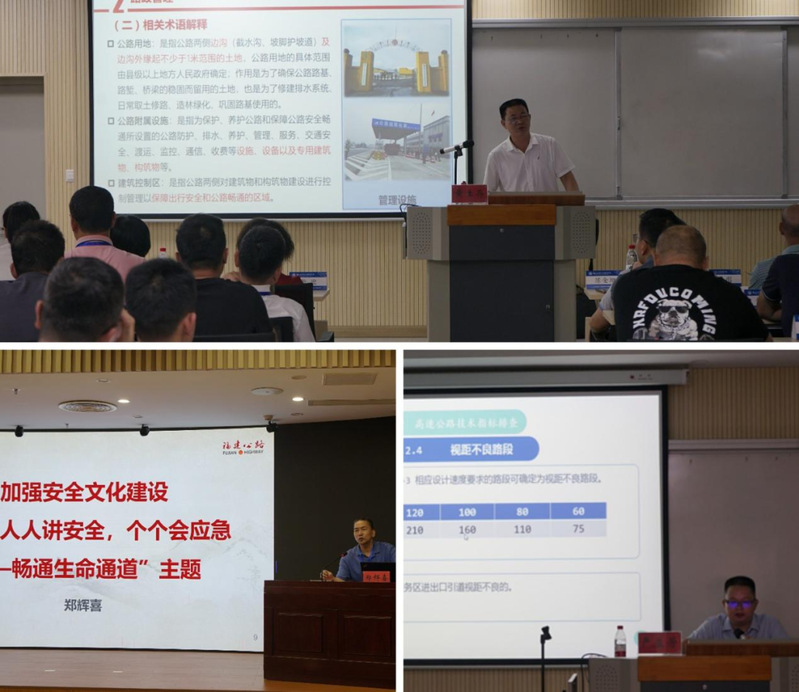 此次培訓內(nèi)容豐富,形式多樣。邀請到了福建省交通運輸廳綜合執(zhí)法監(jiān)督局四級調(diào)研員黃生存、原省公路事業(yè)發(fā)展中心副主任鄭輝喜、福建省應(yīng)急管理專家嚴益芳為學員們做專題講座。內(nèi)容涵蓋福建省路政管理(執(zhí)法)體制介紹、執(zhí)法安全防護、高速公路安全隱患排查等方面。除專題講座外,還前往福建省高速公路路網(wǎng)監(jiān)控指揮中心、青云山服務(wù)區(qū)等單位進行現(xiàn)場教學及業(yè)務(wù)交流。