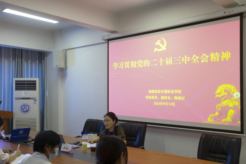 為深入學習貫徹黨的二十屆三中全會精神,推動全會精神入腦入心、落地落實,近日,學院黨委委員、副院長陳艷紅在航海學院校友樓307教室開展黨的二十屆三中全會精神專題宣講,航海學院領導班子、 第一黨支部、第五黨支部以及學生代表參加了宣講會。