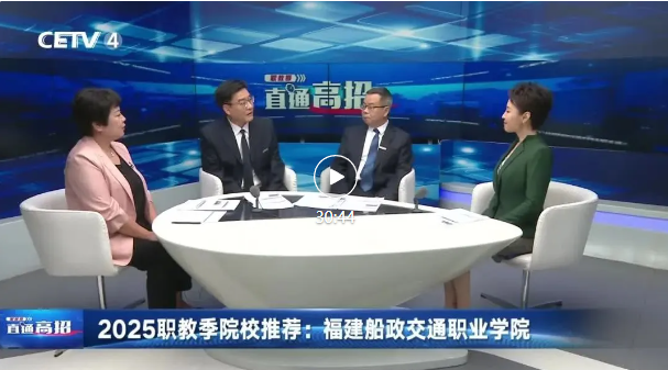 4月29日,學院副院長陳常暉,教務處副處長兼招生辦主任倪紅、航海學院院長李翼重磅亮相中國教育電視臺與中華職業(yè)教育社聯(lián)合打造的全國首檔職教招生權威節(jié)目《直通高招·職教季》,為全國考生及家長帶來最新招生政策解讀與學院職業(yè)教育發(fā)展“硬核”內(nèi)容。
