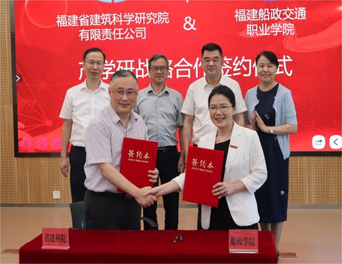 6月24日,學院與福建省建筑科學研究院有限責任公司(下稱“福建建科院”)舉行產(chǎn)學研戰(zhàn)略合作簽約儀式,福建建科院黨委書記、董事長葉健,黨委副書記、總經(jīng)理夏堅,副總經(jīng)理鄭敏升,學院黨委書記陳宜大,黨委副書記、院長陳群,黨委委員、副院長陳艷紅出席儀式。
