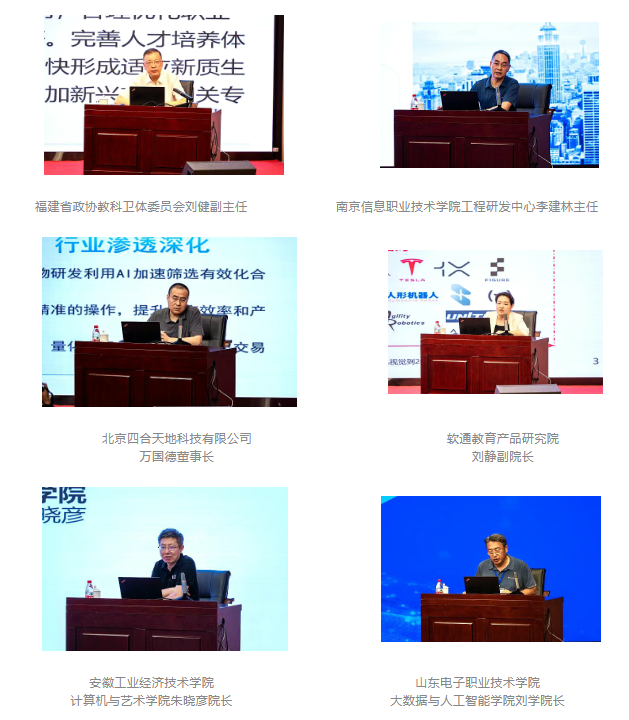 在交流環(huán)節(jié),大會(huì)特邀謝俐司長、劉健副主任、北京四合天地科技有限公司萬國德董事長、軟通教育產(chǎn)品研究院劉靜副院長、山東電子職業(yè)技術(shù)學(xué)院大數(shù)據(jù)與人工智能學(xué)院劉學(xué)院長、安徽工業(yè)經(jīng)濟(jì)技術(shù)學(xué)院計(jì)算機(jī)與藝術(shù)學(xué)院朱曉彥院長、南京信息職業(yè)技術(shù)學(xué)院工程研發(fā)中心李建林主任等七位專家作主旨報(bào)告,內(nèi)容立足前沿、聚焦實(shí)踐,以深刻的理論洞察與豐富的案例剖析,為人工智能領(lǐng)域職業(yè)教育在新時(shí)代的創(chuàng)新發(fā)展指明了方向。