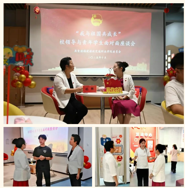 10月1日,學院在福航園“一站式”學生社區(qū)服務中心和福道園7#青年之家,分別舉辦“我與祖國共成長”校領導與青年學生面對面座談會。