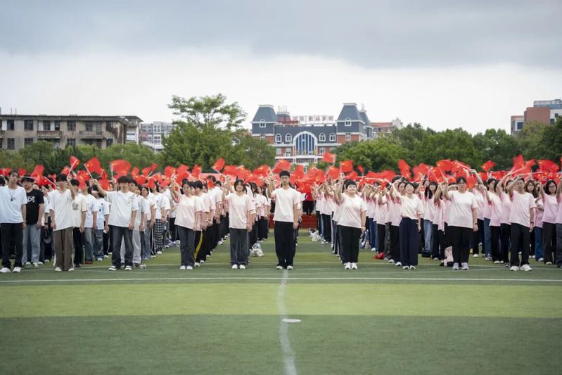 國歌余韻尚在校園回蕩,師生們已高舉國旗,將滿腔熱忱化作鏗鏘吶喊:“青春為中國式現(xiàn)代化挺膺擔(dān)當(dāng),強(qiáng)國復(fù)興有我!強(qiáng)國復(fù)興有我!強(qiáng)國復(fù)興有我!” 嘹亮的口號,既是對祖國的深情告白,更將復(fù)興征程上的青春誓言,牢牢鐫刻在晨光里、心底間。
