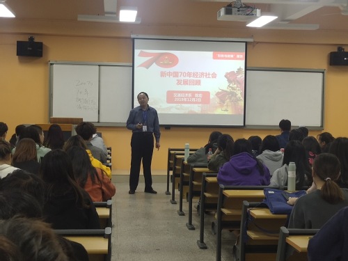 福建船政交通職業(yè)學(xué)院交通經(jīng)濟(jì)系關(guān)于新中國(guó)70年經(jīng)濟(jì)社會(huì)發(fā)展回顧講座于2019年12月1日下午16:00在經(jīng)管樓208成功召開。本次講座由陳宏主任主講, 18級(jí)報(bào)關(guān)全體同學(xué)準(zhǔn)時(shí)到場(chǎng)。
