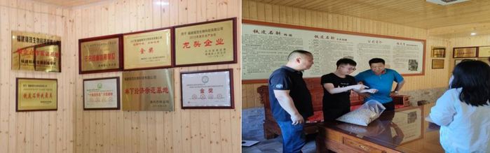 第二站小分隊(duì)來(lái)到了南靖縣山城鎮(zhèn)下碑村,這里是烽琳股份有限公司所屬的最早的種植基地——下碑基地。烽琳公司這幾年來(lái)的碩果累累,從最初200來(lái)畝的荔枝林下種植發(fā)展到擁有910畝生態(tài)種植園,公司墻上掛滿了的榮譽(yù)成果。這些成果也伴隨著部分貧困農(nóng)戶走上了脫貧的道路。同時(shí)烽琳公司也非常重視黨建文化,建有支部委員會(huì),2019年還被南靖縣委評(píng)為四星級(jí)黨組織。據(jù)介紹,公司黨員在農(nóng)民脫貧工作中起模范帶頭作用。