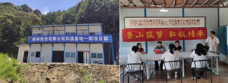 圖5 和溪基地一期的項(xiàng)目部 圖6 烽琳公司技術(shù)員介紹項(xiàng)目情況