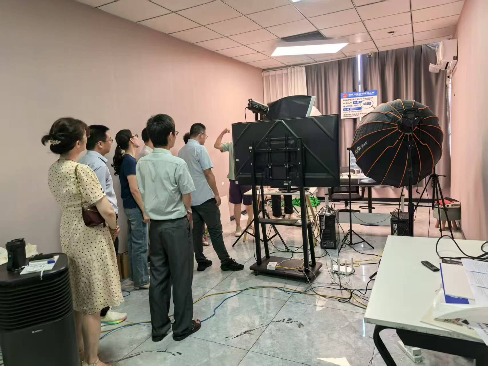在仟漁電子商務有限公司謝經理的陪同下,阮毅院長一行深入企業(yè)核心業(yè)務區(qū)域,重點參觀了企業(yè)的直播運營中心。從商品選品區(qū)的精細化分類、直播場景的沉浸式搭建,到鏡頭前主播的專業(yè)話術展示,再到后臺數(shù)據(jù)團隊對流量轉化、用戶畫像的實時分析,阮毅院長詳細詢問了企業(yè)從直播籌備、內容輸出到訂單轉化的全鏈路運營模式,對企業(yè)現(xiàn)代化的運營體系和專業(yè)化的團隊配置給予高度認可。