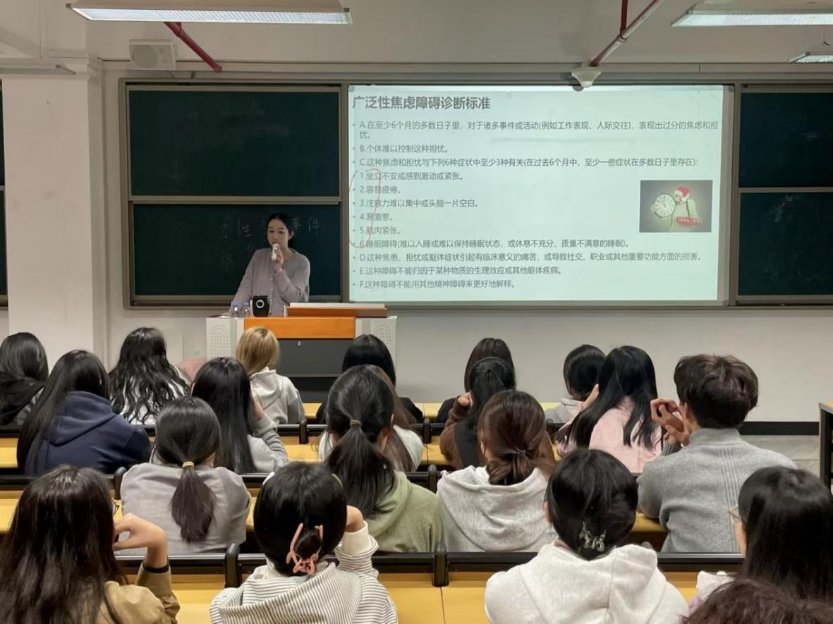 講座中,鄧玨博士聚焦情緒問題的識別與科學調試方法,圍繞心理委員與宿舍心理聯(lián)絡員的職責定位,詳細講解了大學生常見情緒表現、識別技巧、傾聽溝通策略及情緒疏導路徑。結合真實案例與大學生心理特點,老師引導同學們理解情緒背后的心理機制,并針對學業(yè)壓力調適、人際情緒管理等常見困擾,提供了切實可行的應對建議。