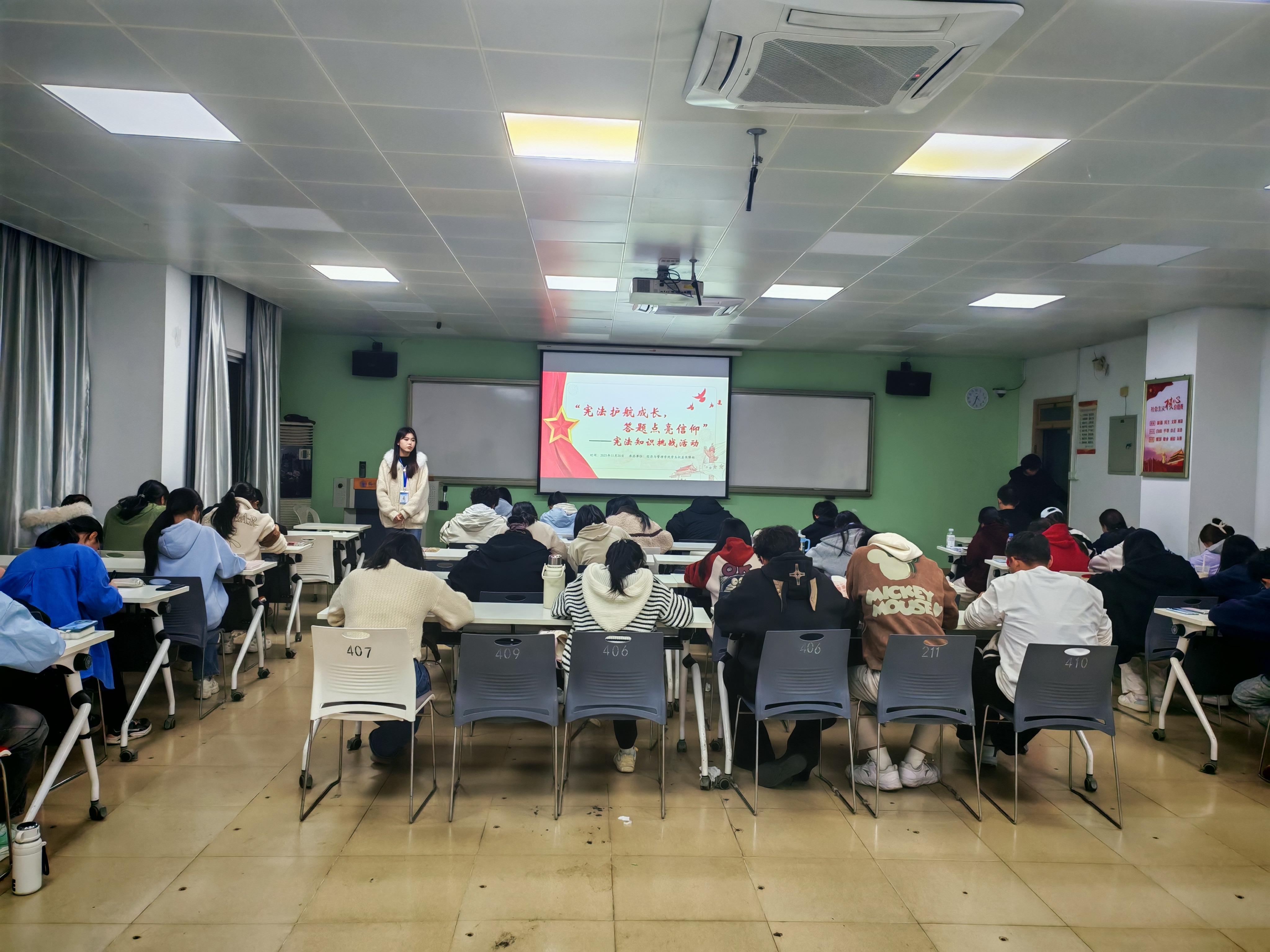 3.舉辦專題知識(shí)挑戰(zhàn),培育法治信仰。組織開(kāi)展“憲法護(hù)航成長(zhǎng),答題點(diǎn)亮信仰”憲法知識(shí)挑戰(zhàn)活動(dòng)?;顒?dòng)緊扣憲法核心知識(shí)與青年生活實(shí)際,通過(guò)答題競(jìng)賽的形式,激發(fā)學(xué)生學(xué)習(xí)憲法、尊崇憲法的熱情,夯實(shí)法治知識(shí)儲(chǔ)備,引導(dǎo)青年自覺(jué)成為社會(huì)主義法治的忠實(shí)崇尚者、自覺(jué)遵守者、堅(jiān)定捍衛(wèi)者,營(yíng)造了校園內(nèi)尊法學(xué)法守法用法的良好氛圍。