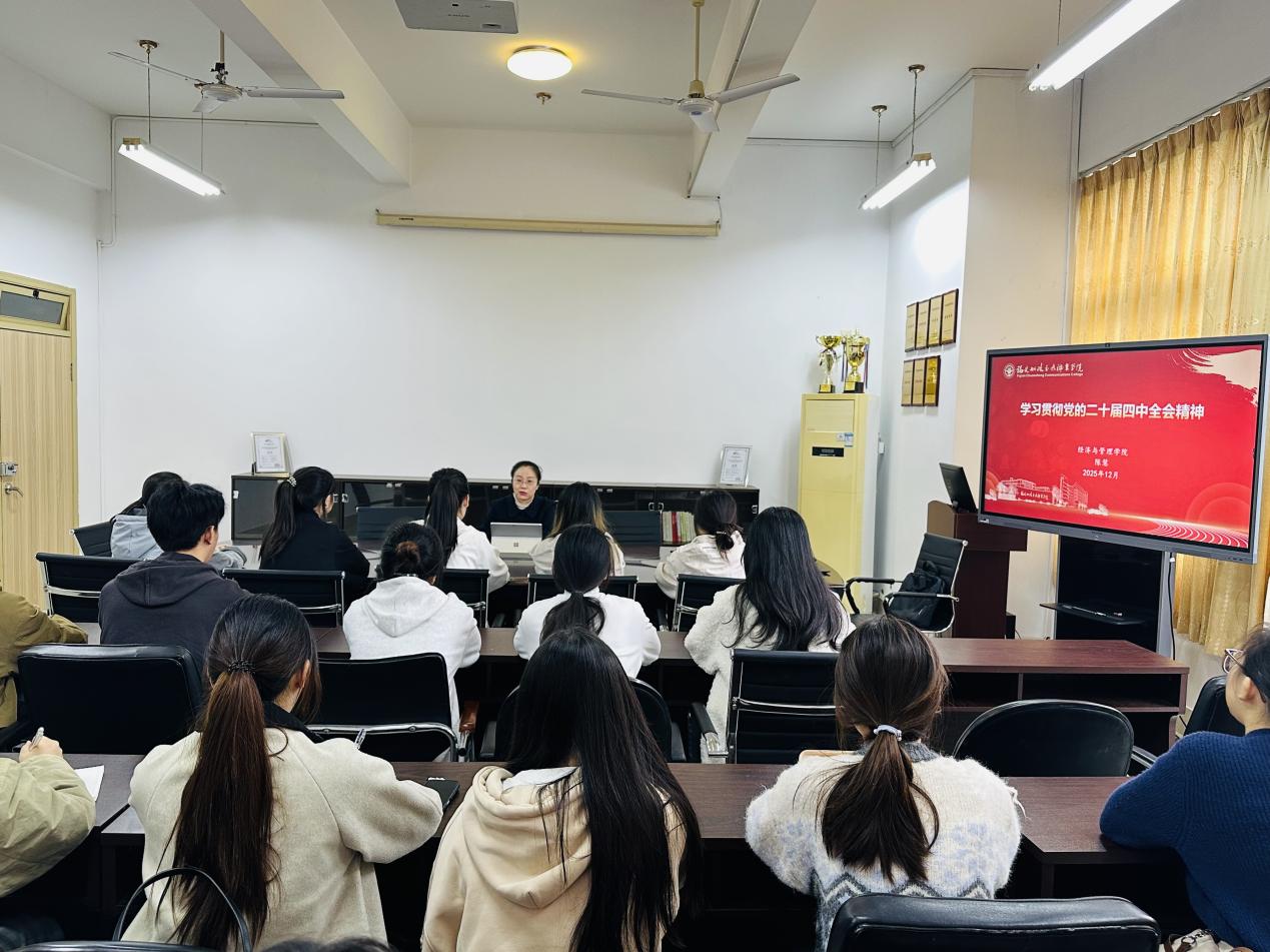 12月17日,經(jīng)濟(jì)與管理學(xué)院黨總支書記陳慧在求實(shí)樓412開展黨的二十屆四中全會(huì)精神宣講,推動(dòng)全會(huì)精神在學(xué)院師生中入腦入心、走深走實(shí)。此次宣講緊扣全會(huì)精神核心要義,系統(tǒng)解讀了全會(huì)作為關(guān)鍵歷史節(jié)點(diǎn)召開的重要意義,闡釋了為“十五五”時(shí)期經(jīng)濟(jì)社會(huì)發(fā)展擘畫的宏偉藍(lán)圖,以及《中共中央關(guān)于制定國(guó)民經(jīng)濟(jì)和社會(huì)發(fā)展第十五個(gè)五年規(guī)劃的建議》這一中國(guó)式現(xiàn)代化建設(shè)綱領(lǐng)性文件的核心內(nèi)涵。